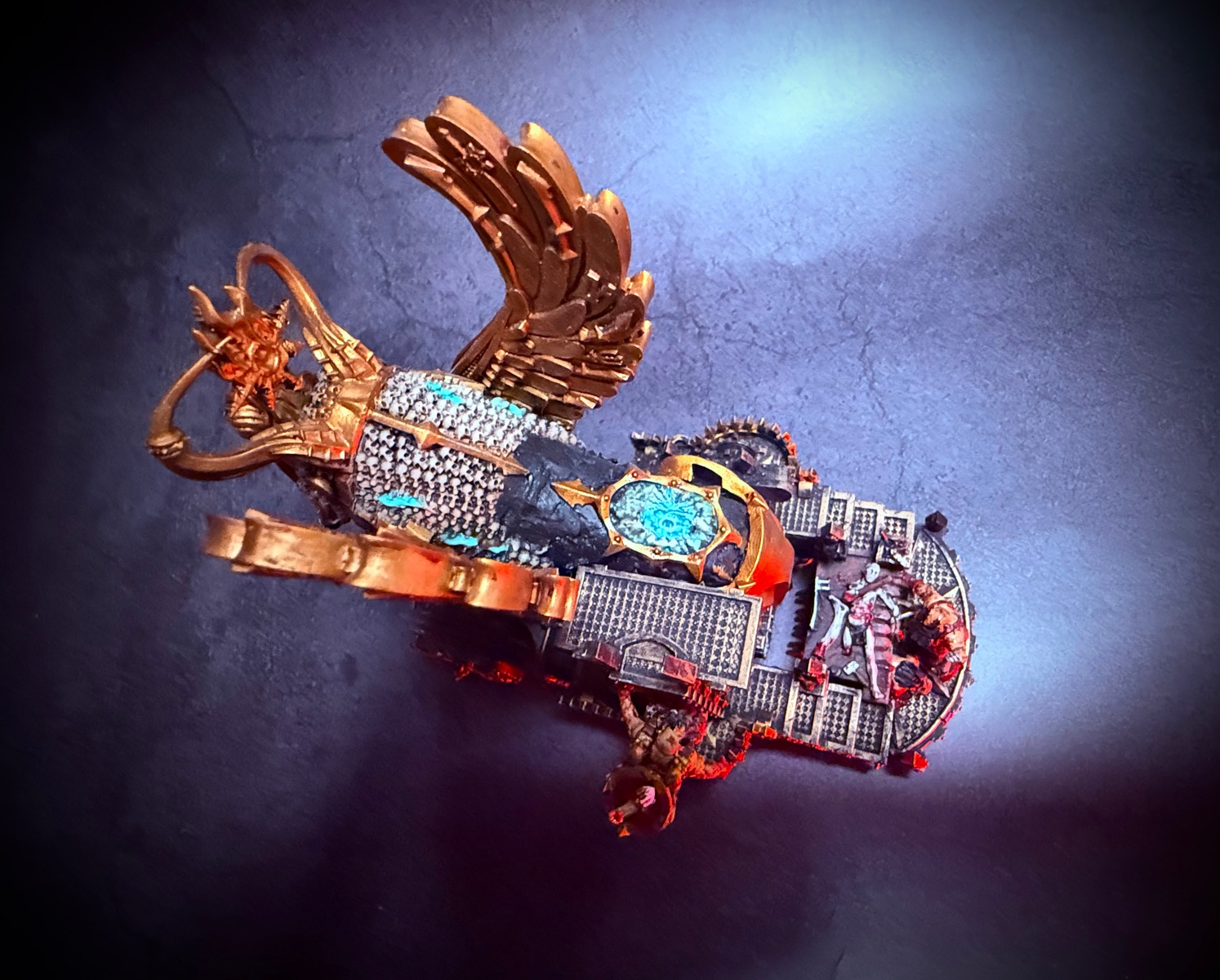 „Wenn ich euer Exzellenz bitten darf, vorne an den Zinnen Platz zu nehmen und das Spektakel zu genießen…“ lächelte Shabbid und wies zu einem Stuhl an der Brüstung. Während der Overlord dorthin watschelte, wurde die Höllenmaschine angeworfen. Der Vizier musste sich kurz auf der Plattform festhalten, als alles vibrierte und zischte. Der Dämon war wach und noch hungrig.