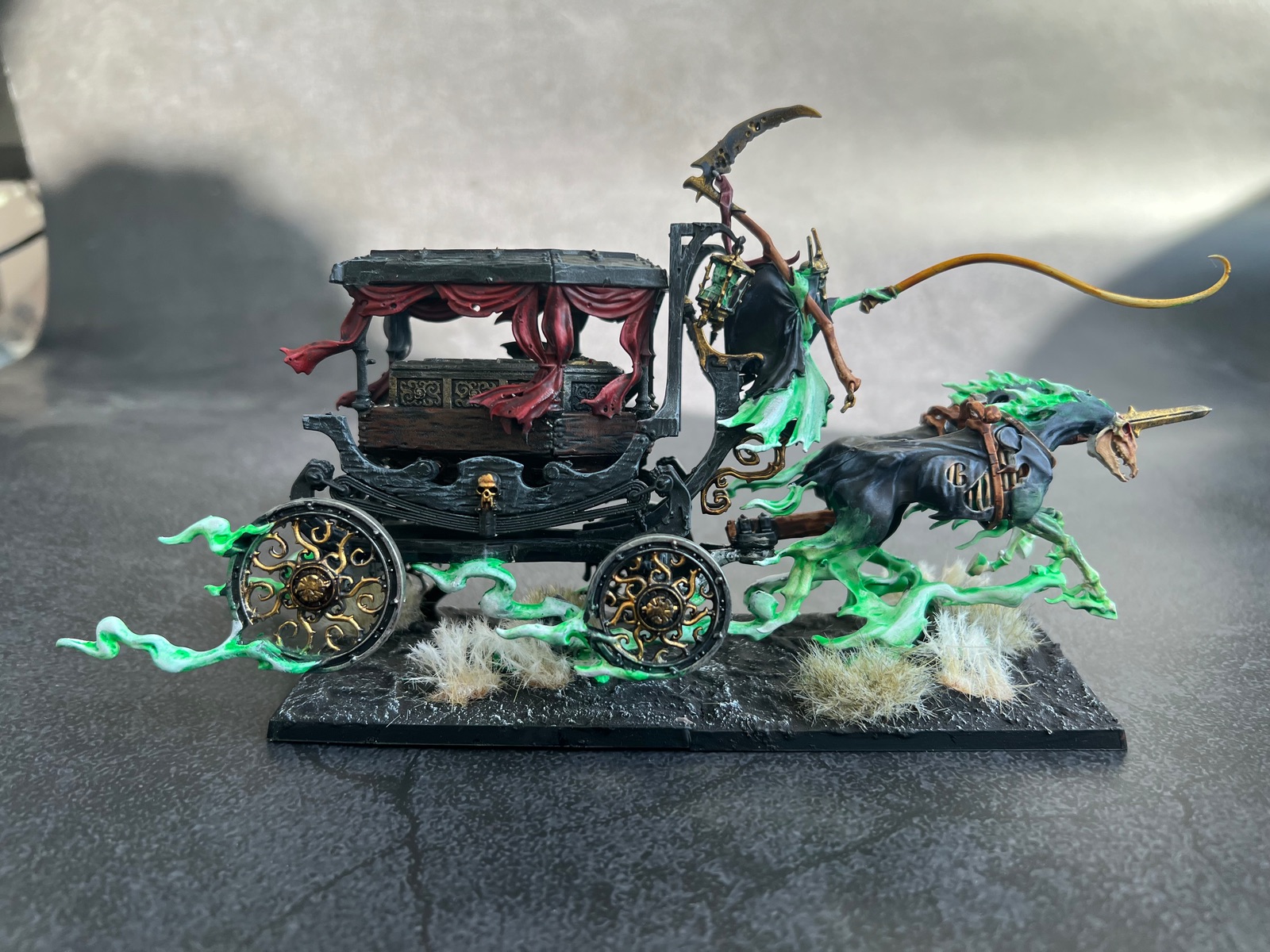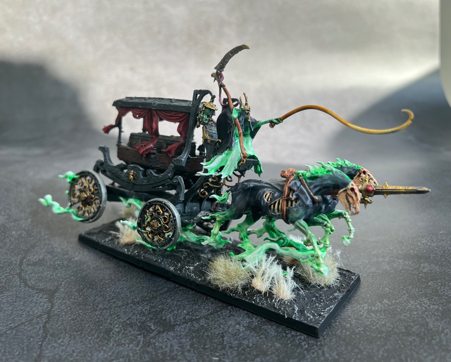 Für das Vampire vs. Ogerspiel wurden dann noch ein paar Miniaturen fertig, u.a. eines meiner Lieblingsmodelle aus der AoS Range, die Black Coach. Etwas gekürzt mit nur zwei Pferden.