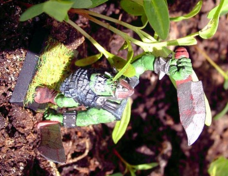 Ich drehe mich um, steht ein Ork zähnefletschend vor mir, in jeder Hand an Spalta schwingend.'Oh shitt', denke ich so bei mir, habe ich doch nicht mal leichtes Rüstzeug an. Also stänker ich zurück: "Raus aus dem Blumenkübel, aber flott, sonst gibts Wasser aufs Haupt. Und da ist sicher Seife drin."