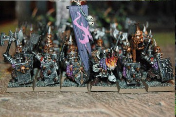 Ansich ein schöner Spielbericht, nur ein Fehler: Ein Slayer-Charaktermodell darf sich nur anderen Slayer-Einheiten anschließen, keinen Langbärten, KK, HT etc.