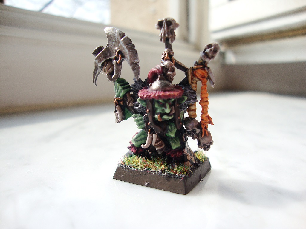 Es gibt viele schicke Schamanen von GW. Mein absoluter Liebling ist der Schami mit dem Snotling auf dem Kopf, aber auch den Schädelpass Schamanen finde ich cool. Dieser kleine Eimer mit den Pilzen und die kleine Goblinpuppe...