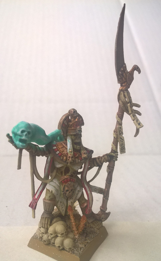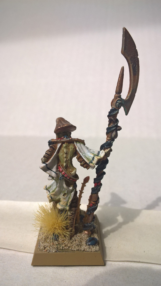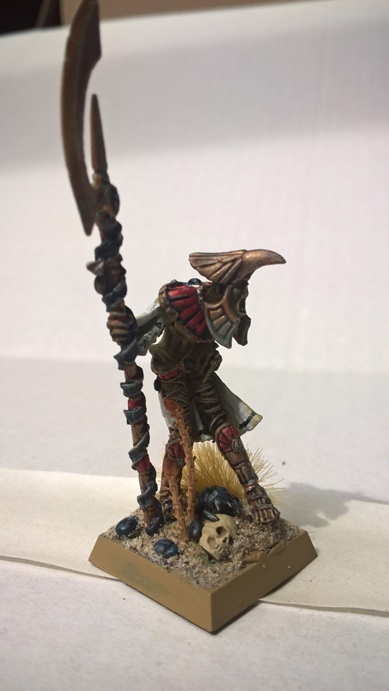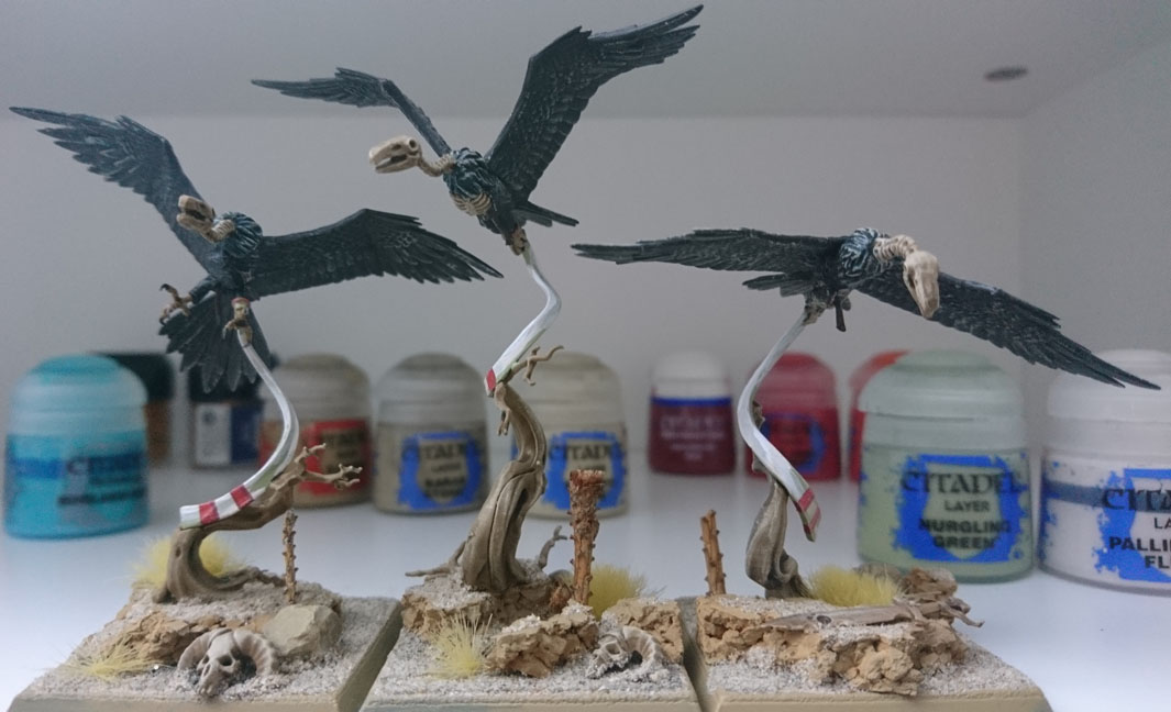 Genau wie alle anderen "Kreaturen" Khemris waren das mal Statuen und keine Lebewesen - einzige Ausnahme sind hier die Geier und die Schwärme.Die Warnfarben der Bögen sind Giftschlangen nachempfunden - und geben zudem die Armeefarben wieder. Aber das ist wohl einfach Geschmackssache