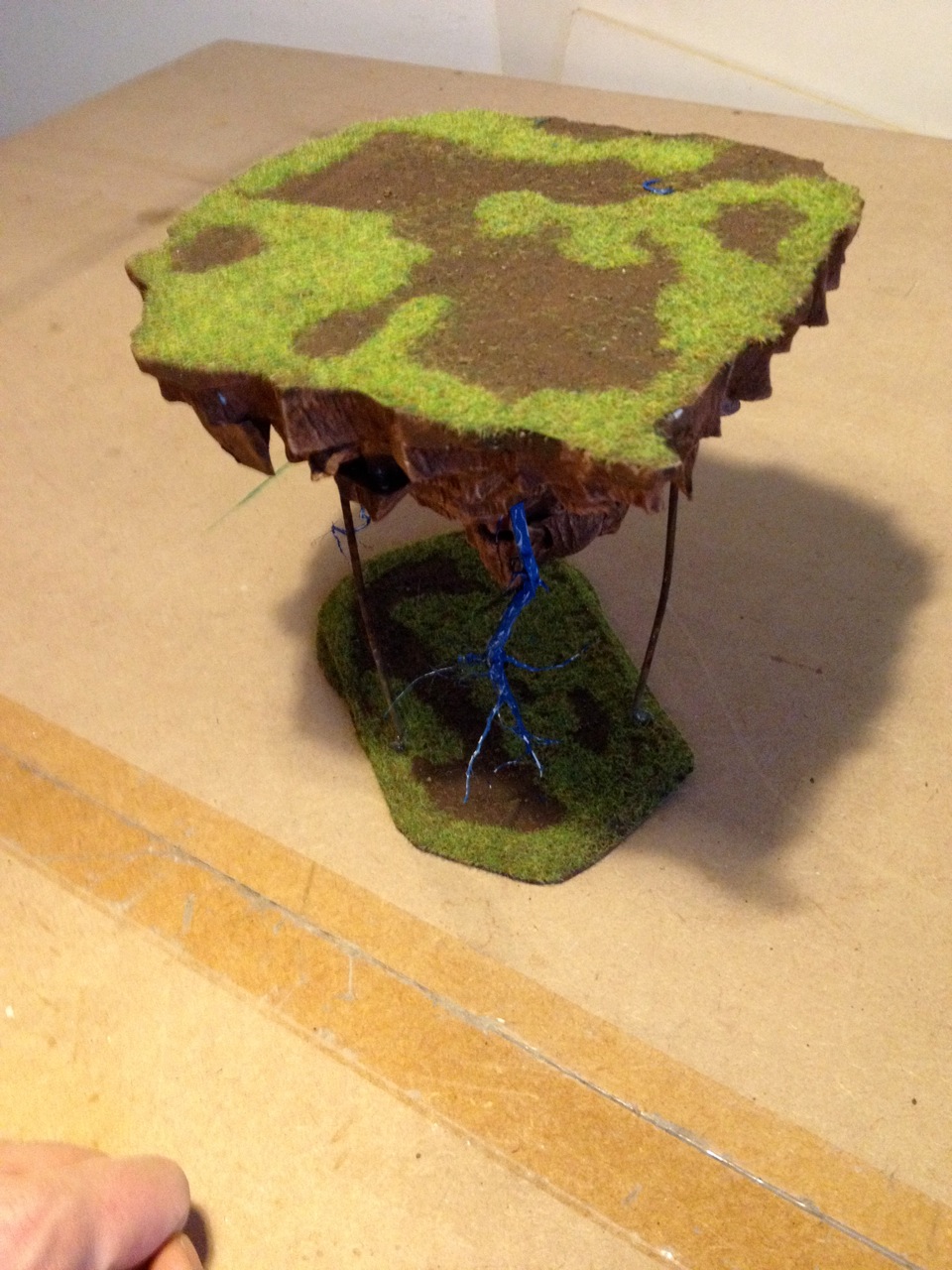 Also dunkel anmalen und in das Styrodur stecken... auch gut für die Arkanen Fokuse geeignet halt wenn was über dem Boden schweben soll.Ach die uralten Frottee Handtücher die der Hund oder die Altkleidersammlung bekommt sind auch super als Reetdach oder Felle...