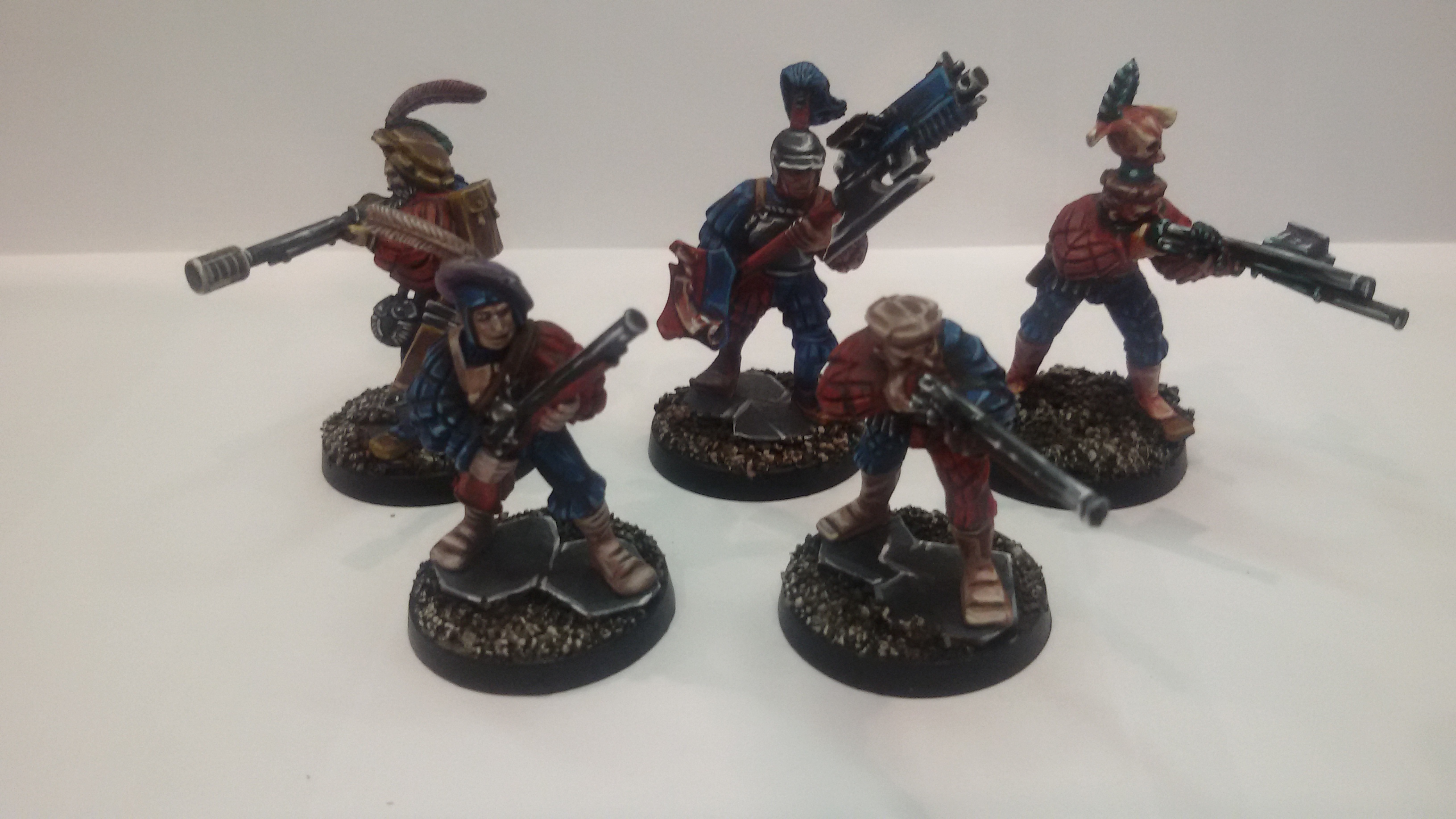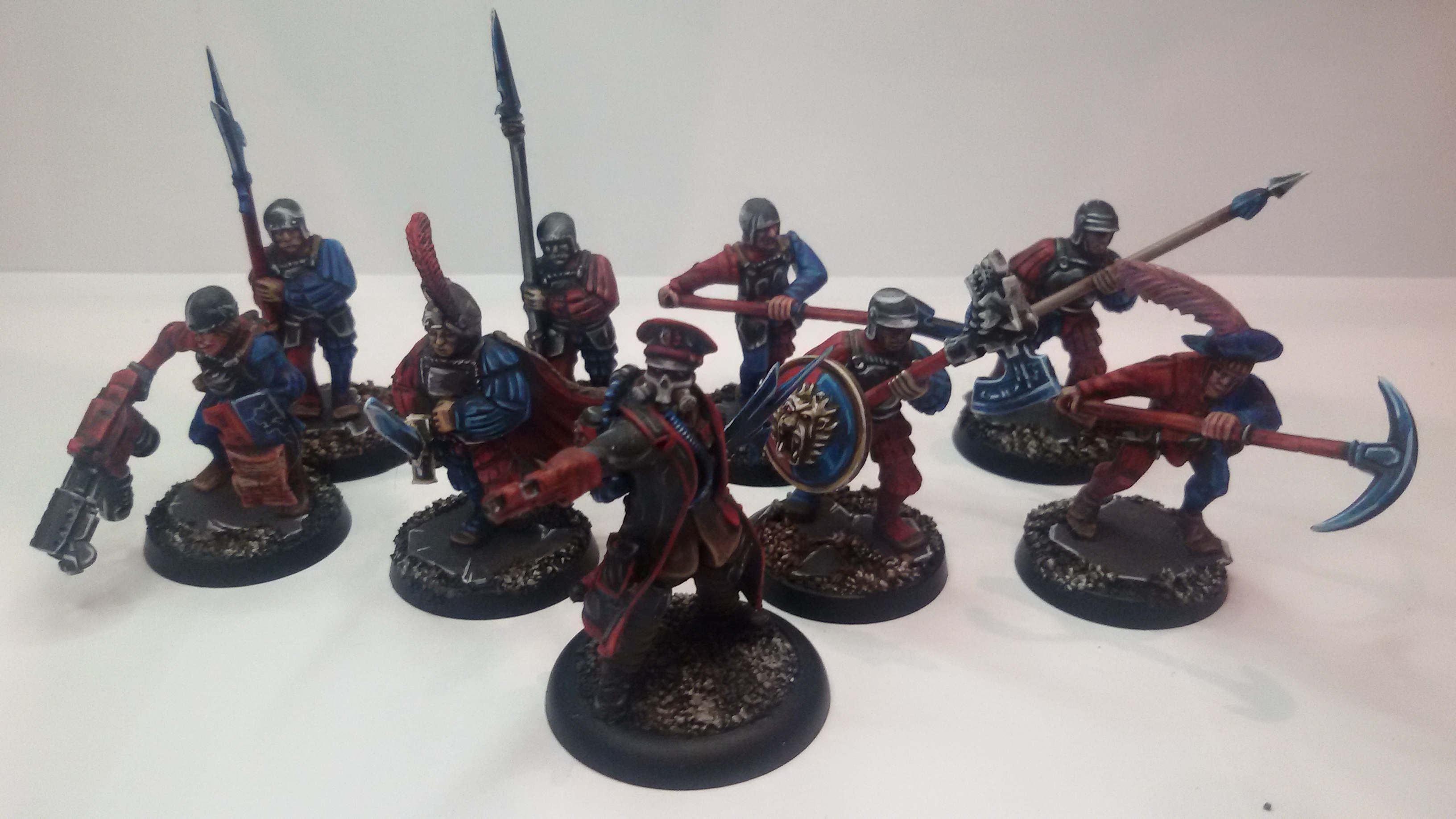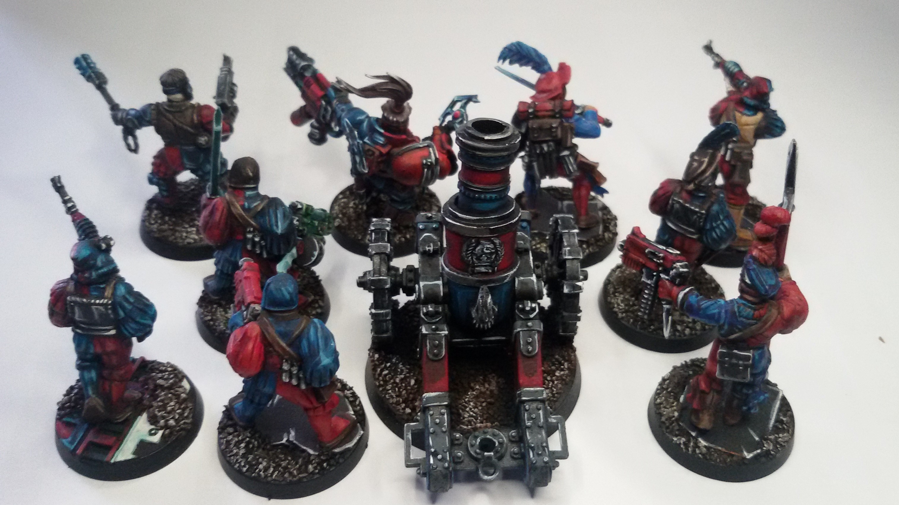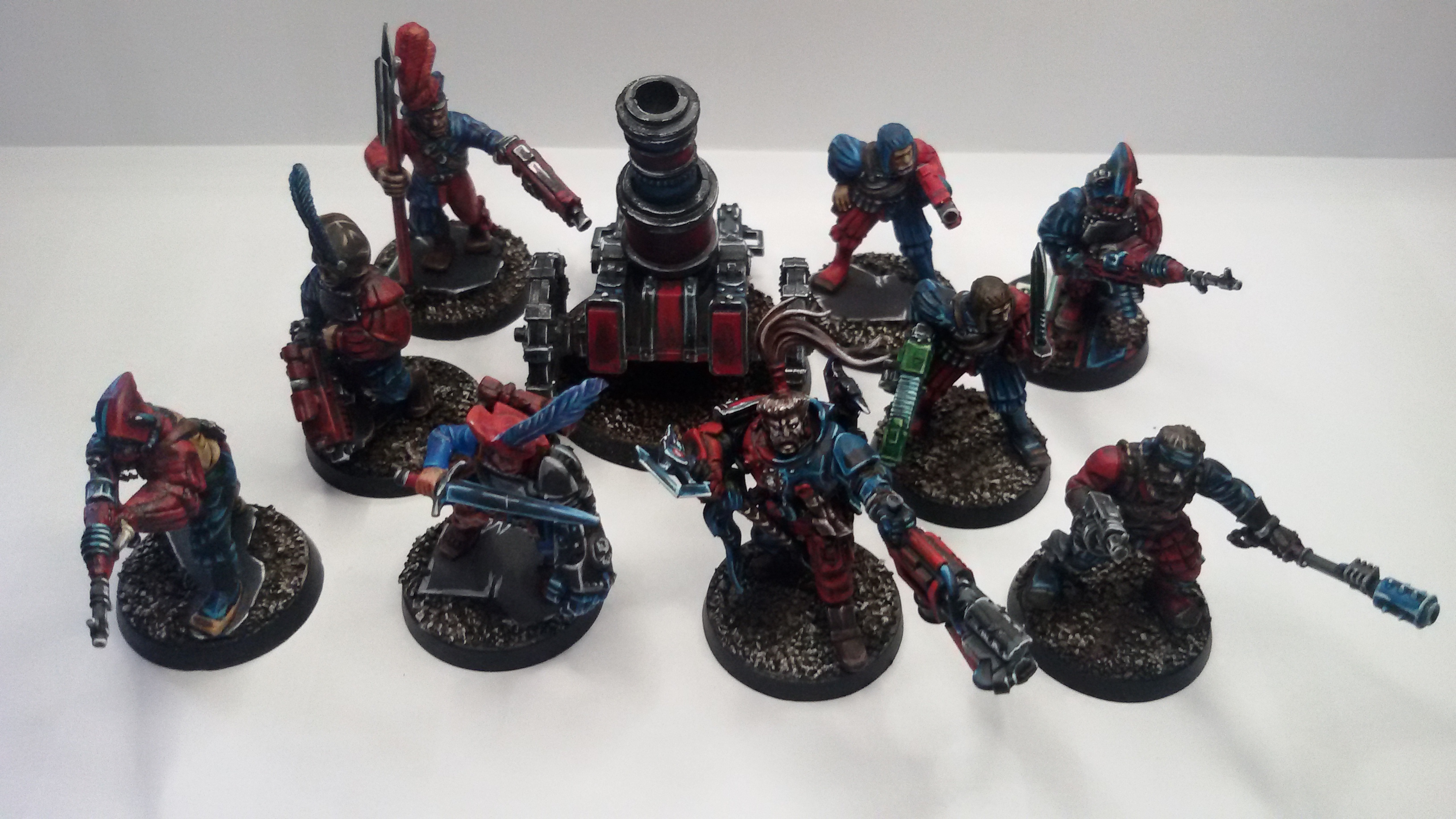 Es wird in erster Linie einer imperiale Infanterie Armee werden, ohne Fahrzeuge (naja vll. später) . Den Kern bilden Truppen von der Welt Thrall. Unterstützungskontingente aus Veteranen von Catachan, Armangeddon und Necromunda sind auch vertreten. Ebenso wie ein Elite Kontingent aus dem Segment Ultima.