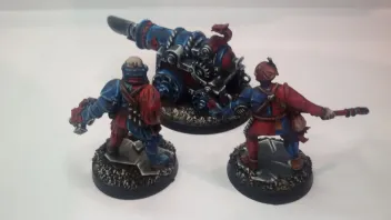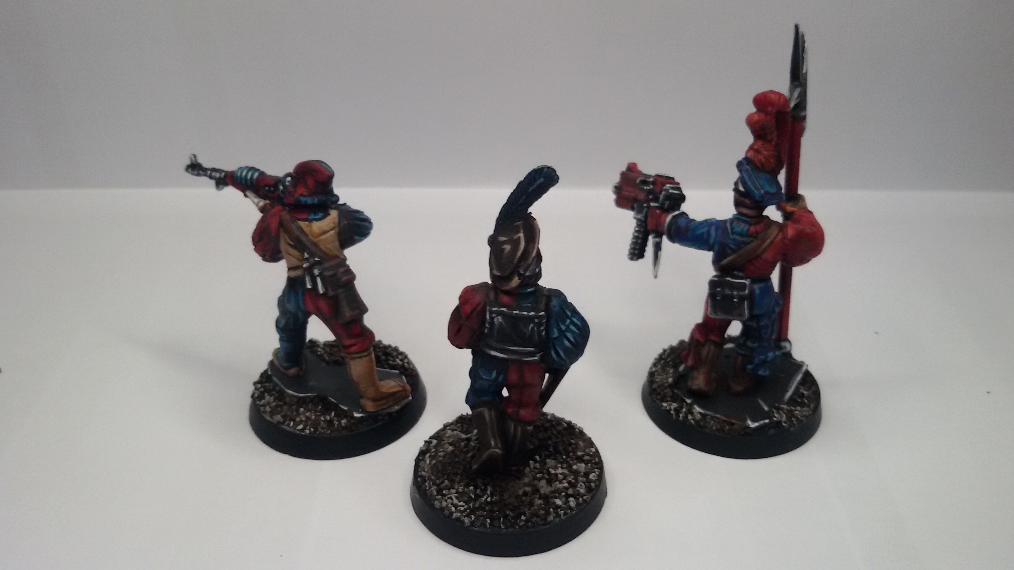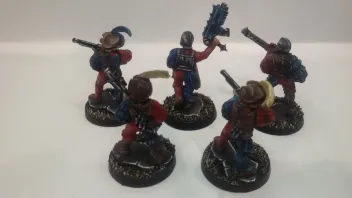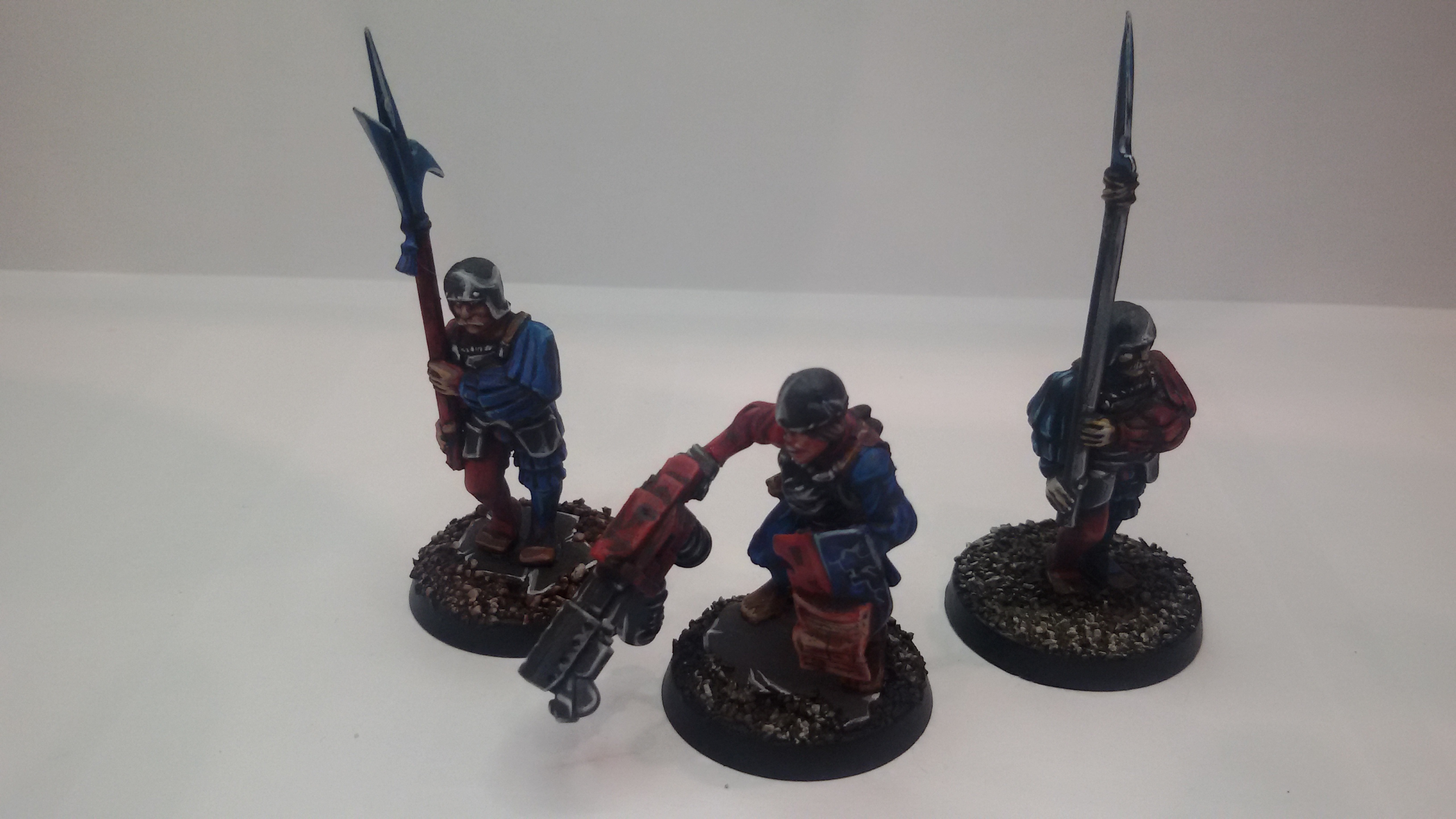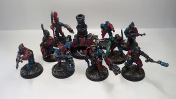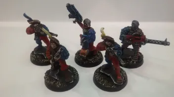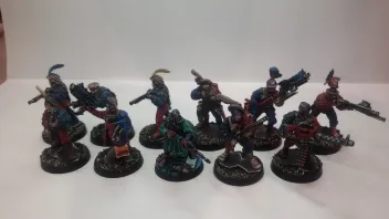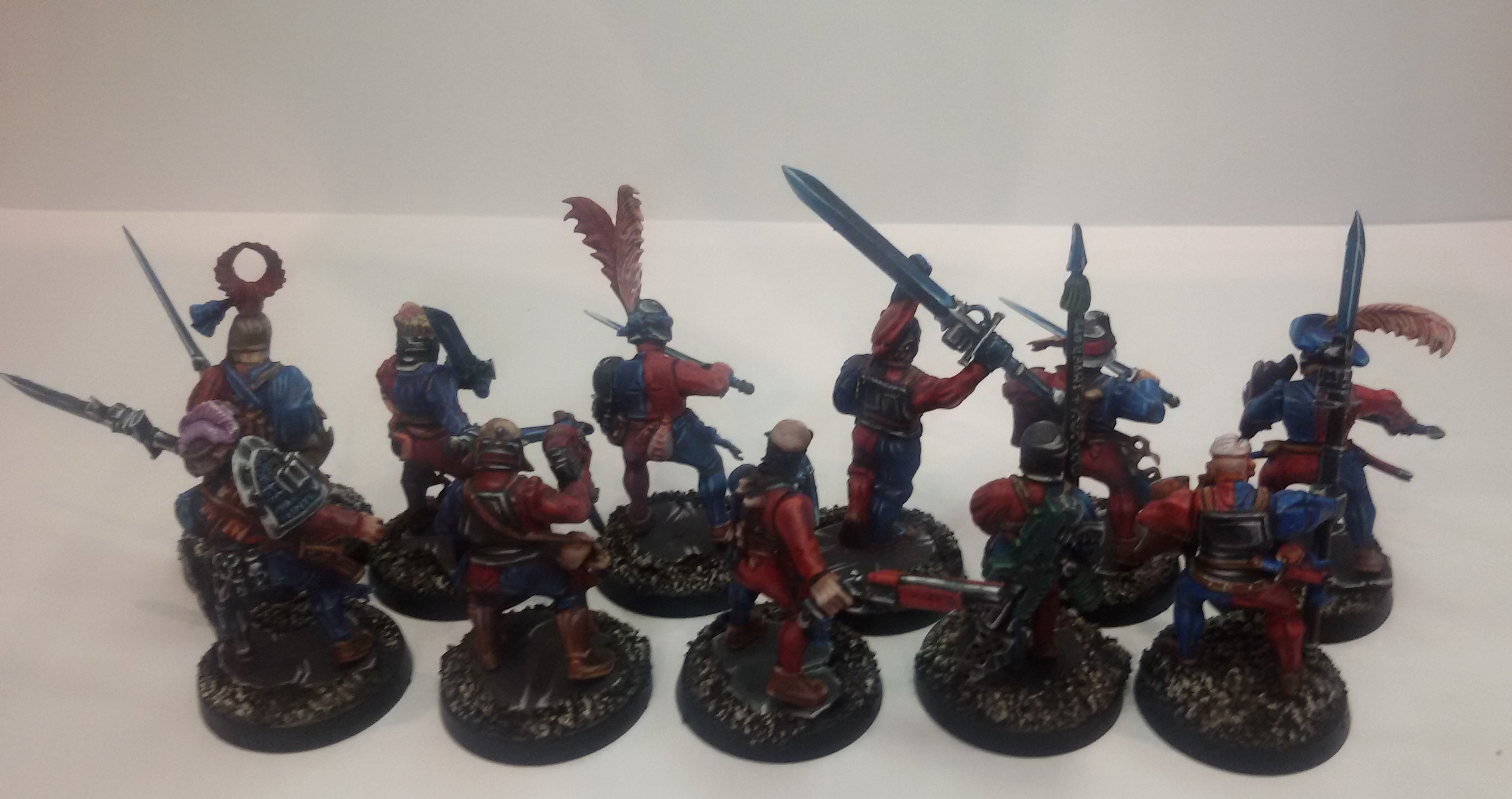 Es wird in erster Linie einer imperiale Infanterie Armee werden, ohne Fahrzeuge (naja vll. später) . Den Kern bilden Truppen von der Welt Thrall. Unterstützungskontingente aus Veteranen von Catachan, Armangeddon und Necromunda sind auch vertreten. Ebenso wie ein Elite Kontingent aus dem Segment Ultima.