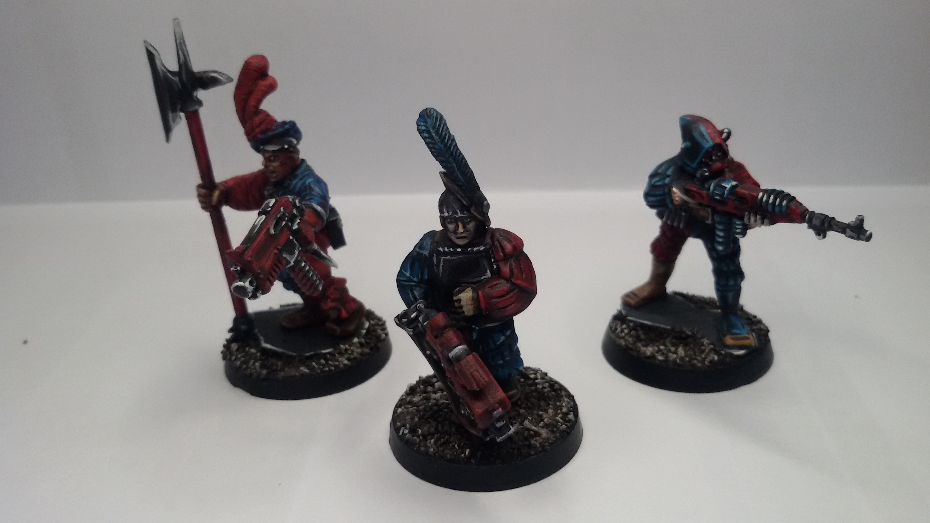 Vll. noch ein zwei Worte zur Armee: bis auf die 3 Damen und den kommenden Kommissar sind bisher alle Modelle aus der Berühmten BBR (BitzBoxRest) Reihe. Daher muss ich sagen die Umbauten sind mit dem, was ich finden konnte entstanden. Es ist kein spezielles Projekt, daher müsst ihr hier die kleinen Unstimmigkeiten wie z.B. die Waffengröße verzeihen!