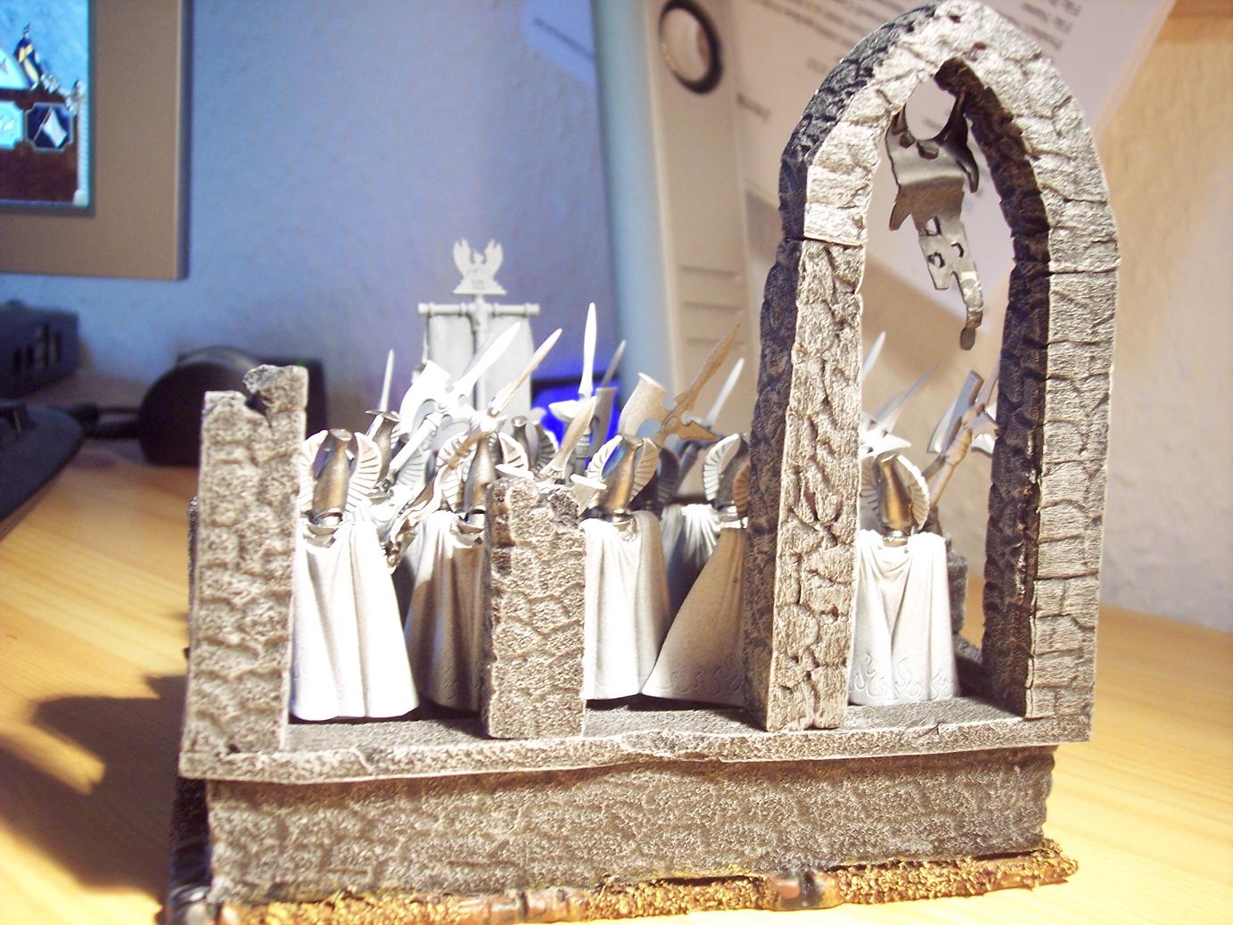 Zudem wird euch evtl auffallen,dass es nur 18 und nicht 20 modelle sind. es soll noch ein Altar in die Mitte kommen, wo ein bluttriefendes Schwert kommt. Auf das banner im Torbogen kommt noch das Zeichen des Khaine.