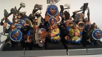 Aber danke für den Lob. Einerseits ist es gut, dass sie alle fast gleich aussehen, andererseits würd ich auch gern mal ganz viel ummodelieren, also einzelne Einheiten besonders machen, aber nicht bei Zwergen. Das mache ich mal wenn ich wirklich mal Tiermenschen oder so habe.