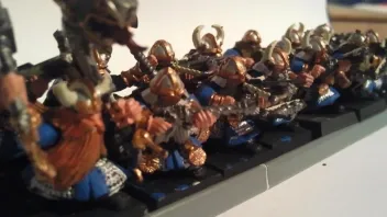 Mit den Bärten tue ich mich auch noch am schwersten ... oft schwer zu erreichen mit dem Pinsel und eine gute Farbe zu finden auch nicht immer so leicht. Also bei meiner Armee lege ich großen Wert darauf, dass bestimmte Einheiten immer Bestimmte Bart bzw. Haarfarben haben. Beispielsweise haben "einfache" Einheiten wie Klankrieger, Musketenschützen usw. meist Farben wie Blond, Braun oder noch dunkler. Thaine, Runenschmiede, Langbärte etc. also mehr die "Elite" eher helle bis weiße, was für ihre Weisheit stehen soll. Naja und Slayer immer rot.