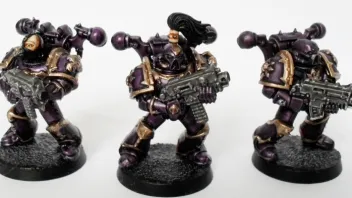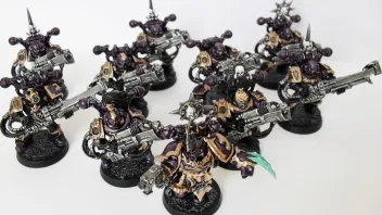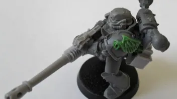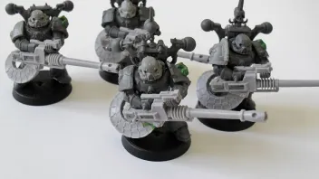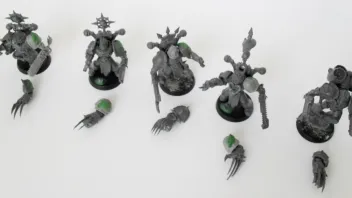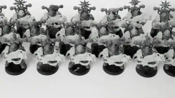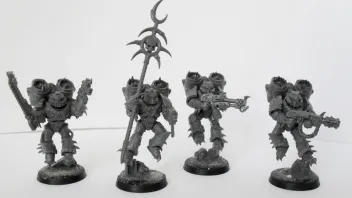 Und nun ein paar Bilder allerdings noch in Plastikgrau (leider bin ich mit der Kamera nicht allzu begabt, hoffe man kann dennoch genug erkennen), Detail Aufnahmen einzelner Minis folgen sobald Farbe drauf ist. Die Champs haben Magnete in den Schultern bzw, Armen, zum praktischen Austausch der Waffen