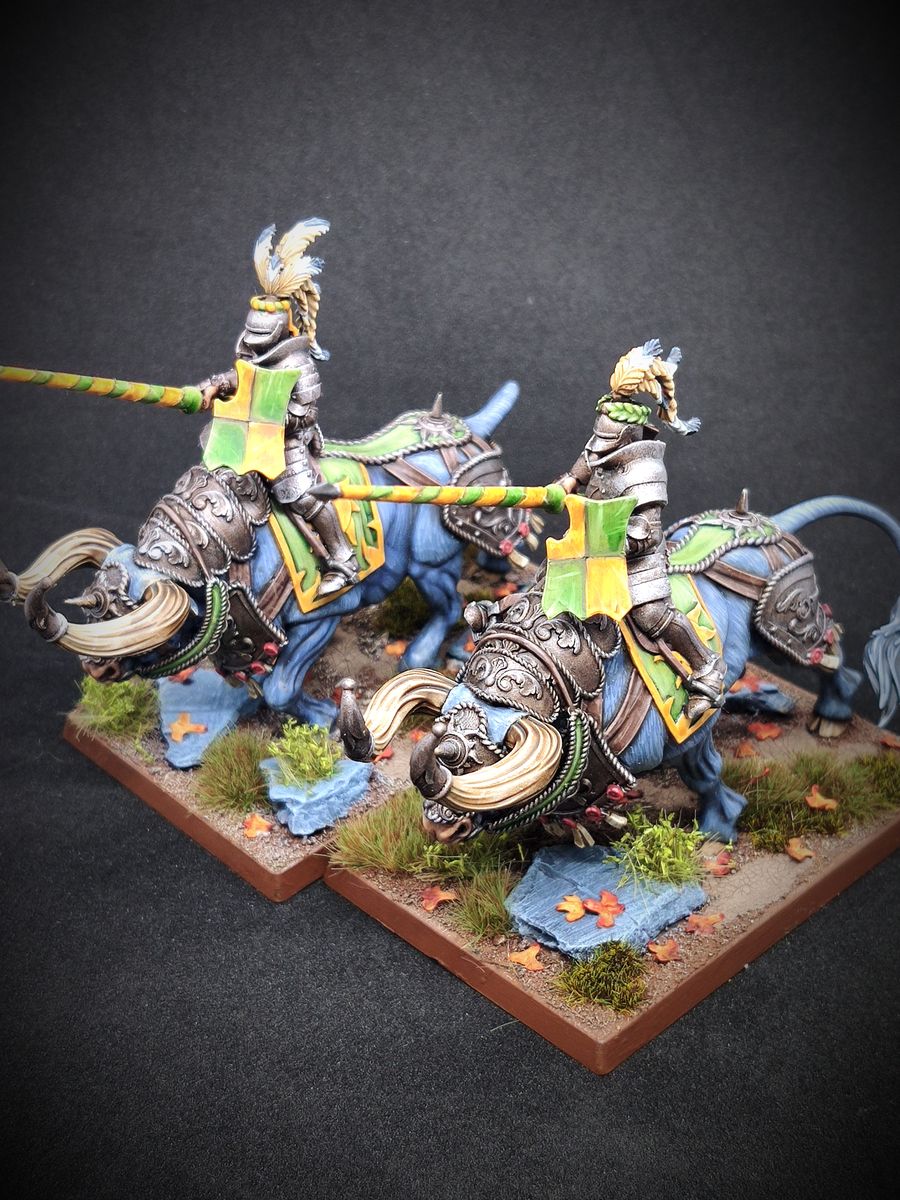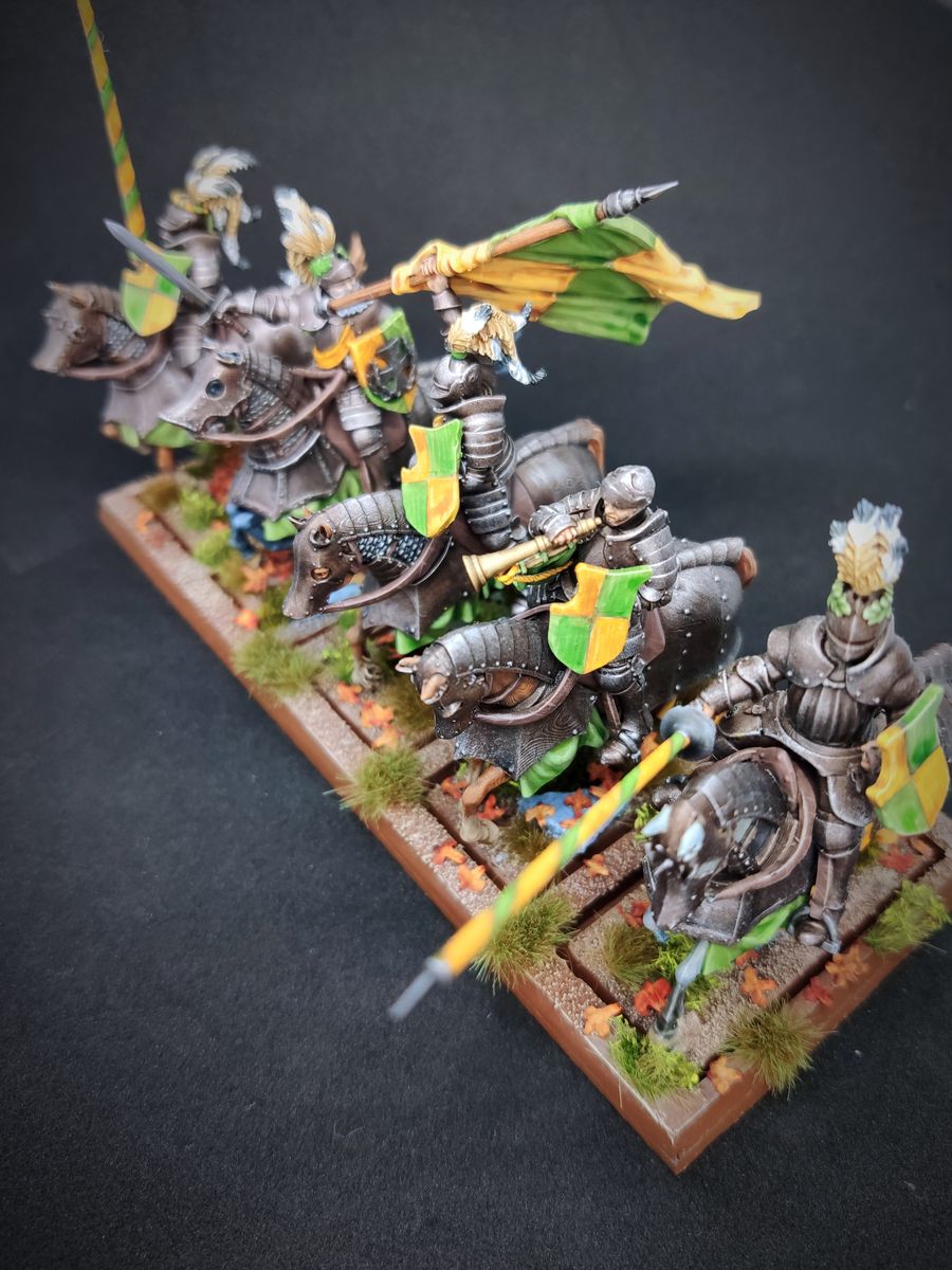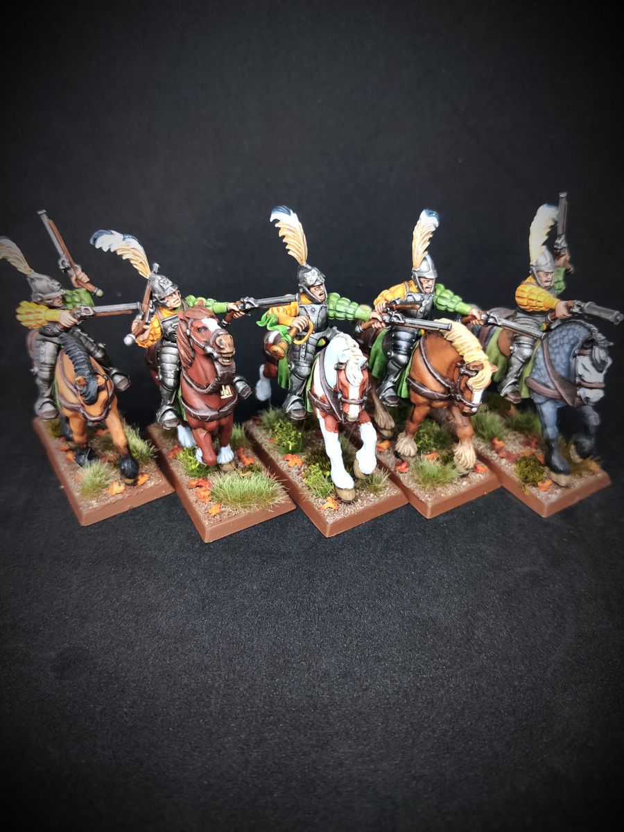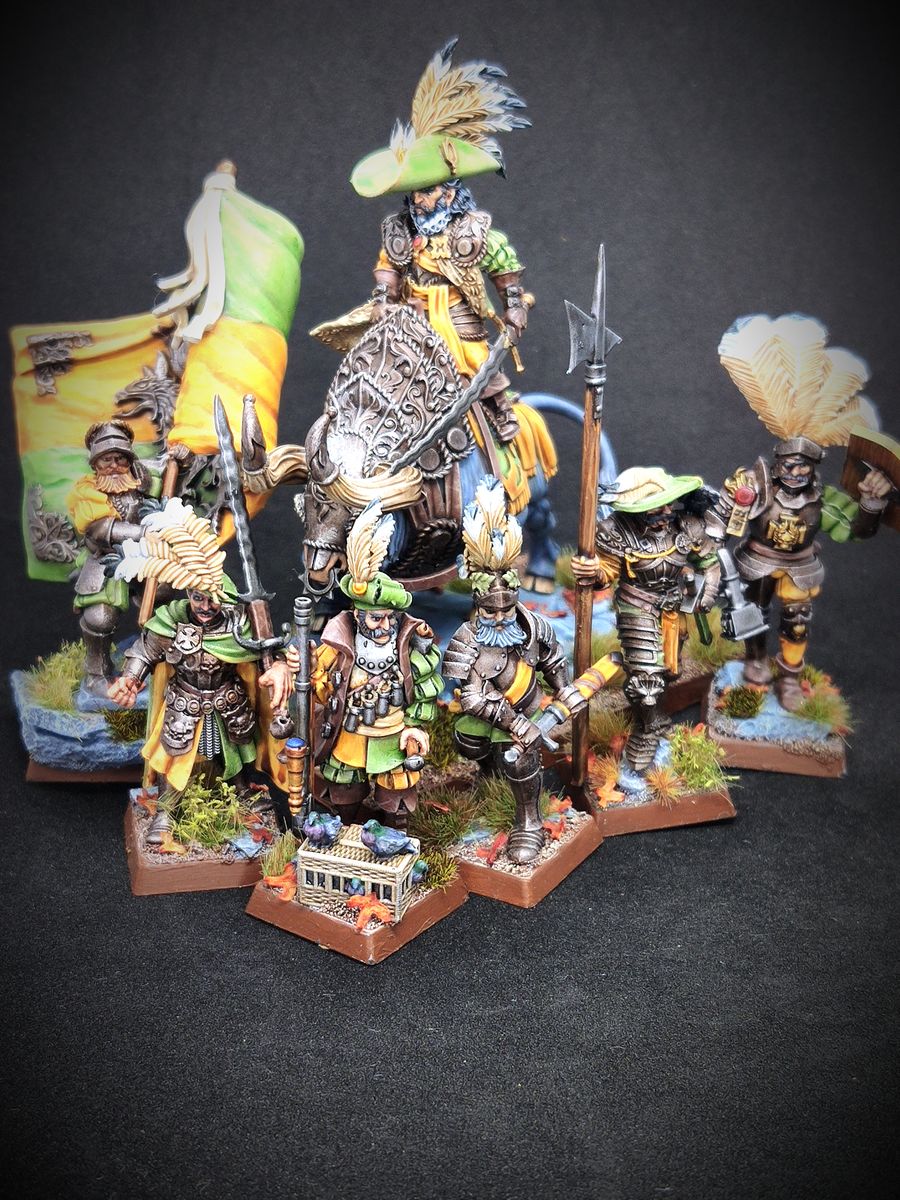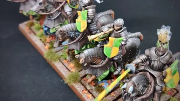 Also ein Fehler war ja, dass die Kanonen und die Musketen nicht genug Reichweite hatten. Der Chaptermaster ging zusammen mit den Demigreifen tatsächlich ganz gut durch die Mitte und hat so einen Thain mit Schildträgern überrannt. Die Schützen und die Kanonen waren quasi nutzlos, die eine hat einen Gyrokopter erschossen, alles andere war nie in Reichweite. Die Speerträger mit dem Armeestandartenträger hab ich mit "Schattenross" schnell nach vorne gebracht, aber da hat die eine Kanone dann eine 10er Kartätsche losgelassen und halt dieser bescheuerte Zwergenmaschinist. Dann waren davon nur noch 4 oder so übrig.