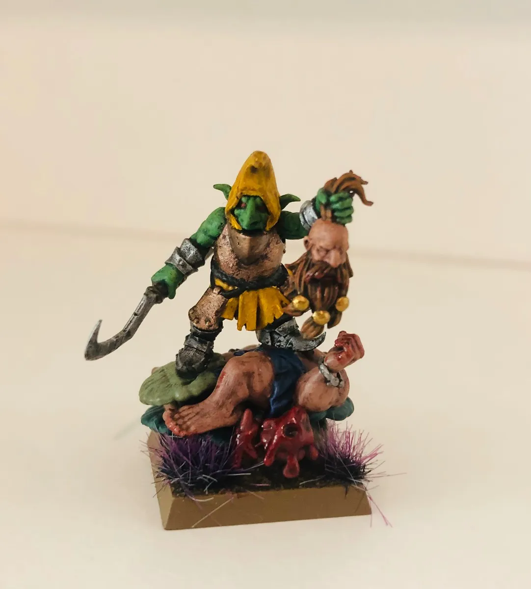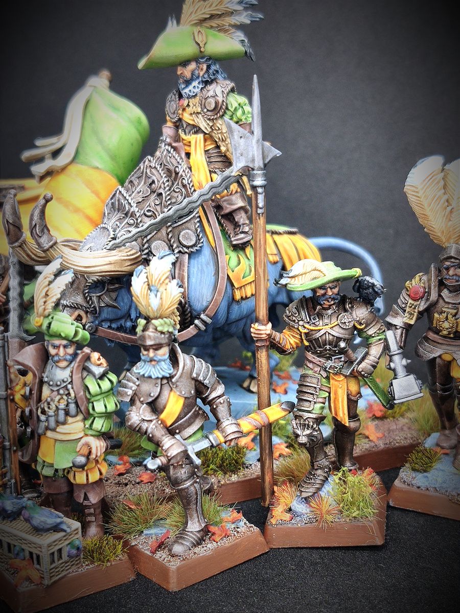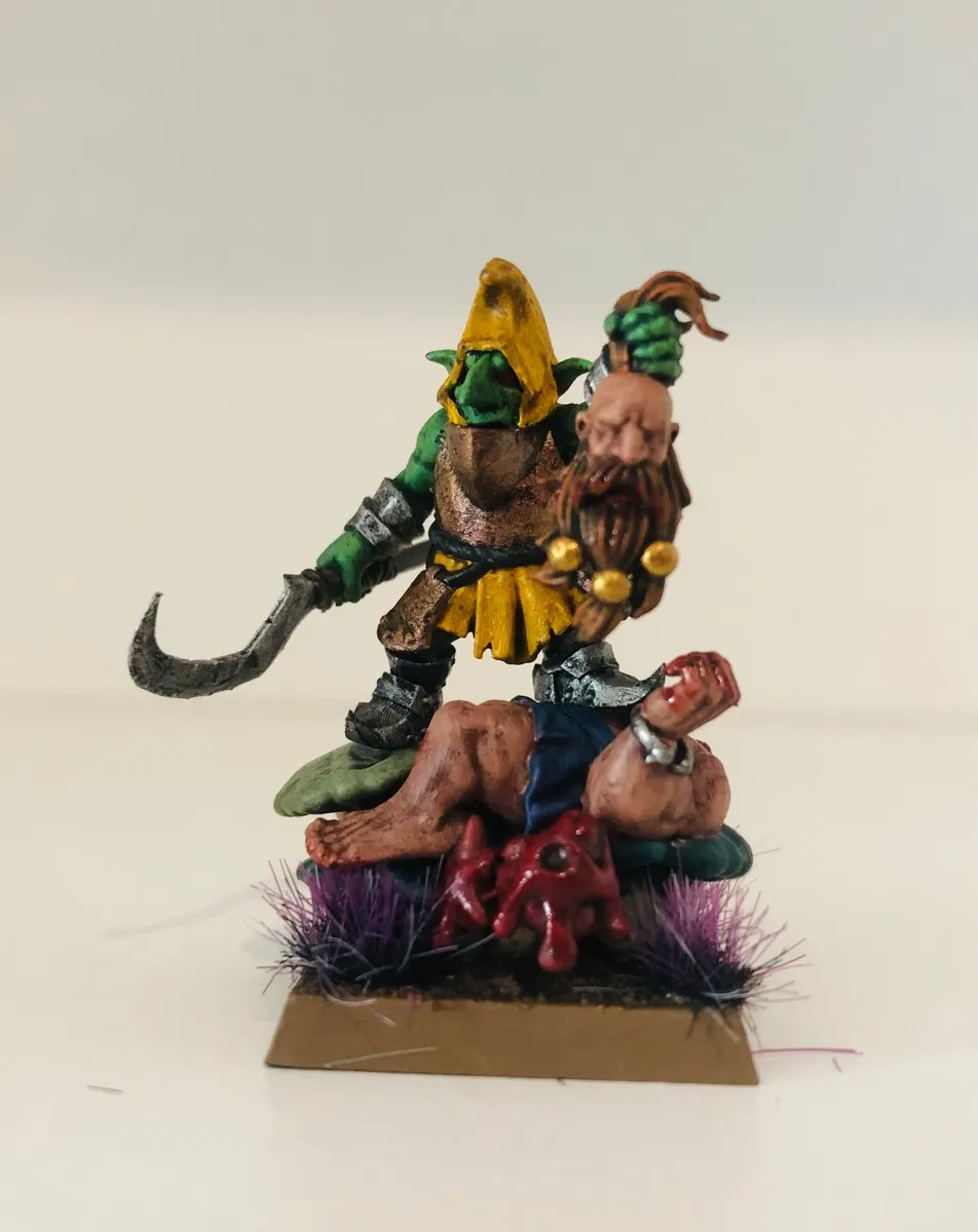 Also ein Fehler war ja, dass die Kanonen und die Musketen nicht genug Reichweite hatten. Der Chaptermaster ging zusammen mit den Demigreifen tatsächlich ganz gut durch die Mitte und hat so einen Thain mit Schildträgern überrannt. Die Schützen und die Kanonen waren quasi nutzlos, die eine hat einen Gyrokopter erschossen, alles andere war nie in Reichweite. Die Speerträger mit dem Armeestandartenträger hab ich mit "Schattenross" schnell nach vorne gebracht, aber da hat die eine Kanone dann eine 10er Kartätsche losgelassen und halt dieser bescheuerte Zwergenmaschinist. Dann waren davon nur noch 4 oder so übrig.