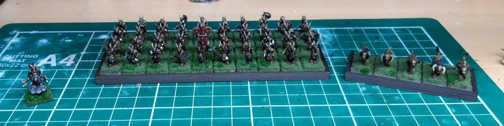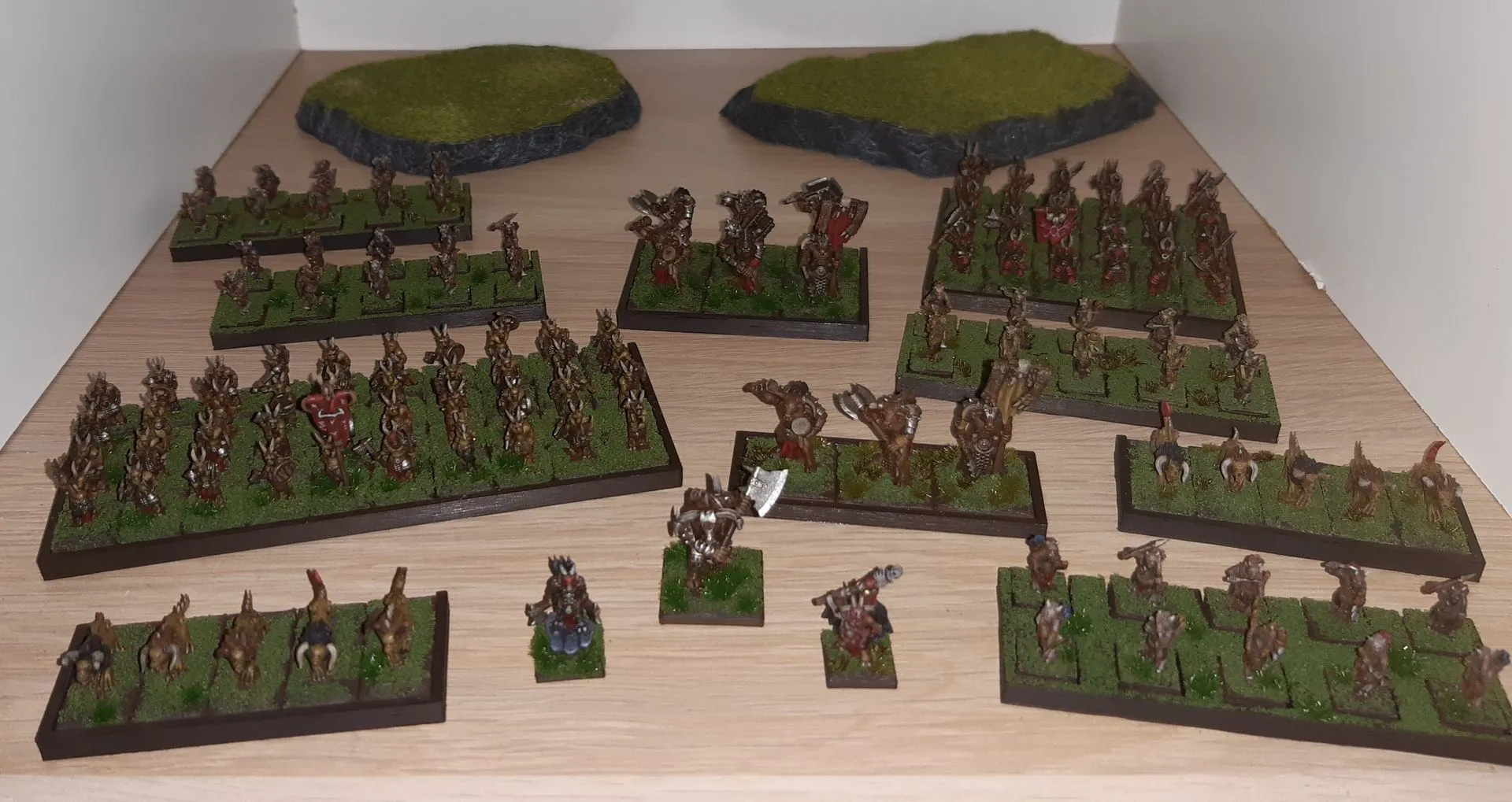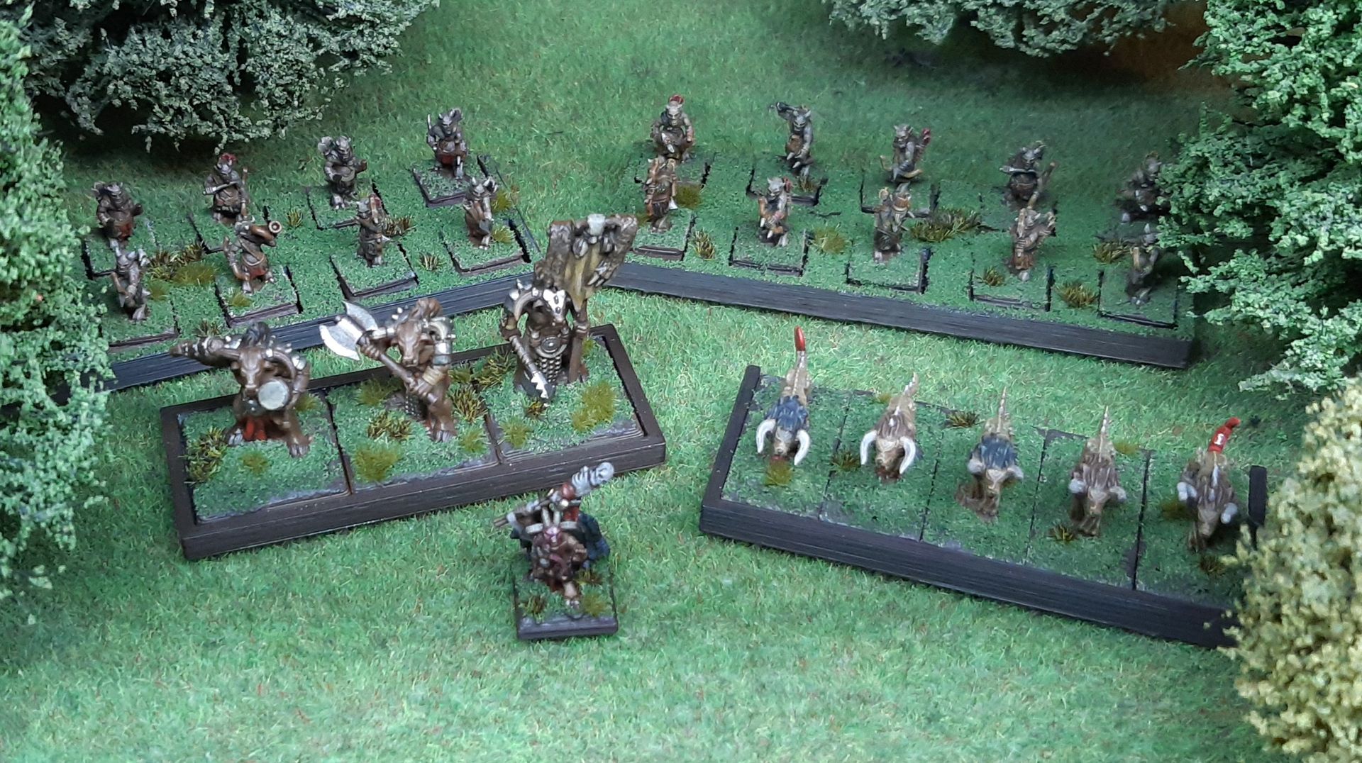 20 Gors, 25 Ungors, 15 Ungors mit Option auf volle KOM, 5 Hunde, 5 Plünderer, 2 Riesen und 1 Ghorgor schließen sich der Armee an.