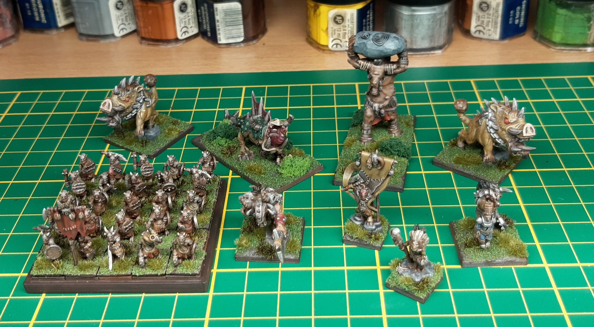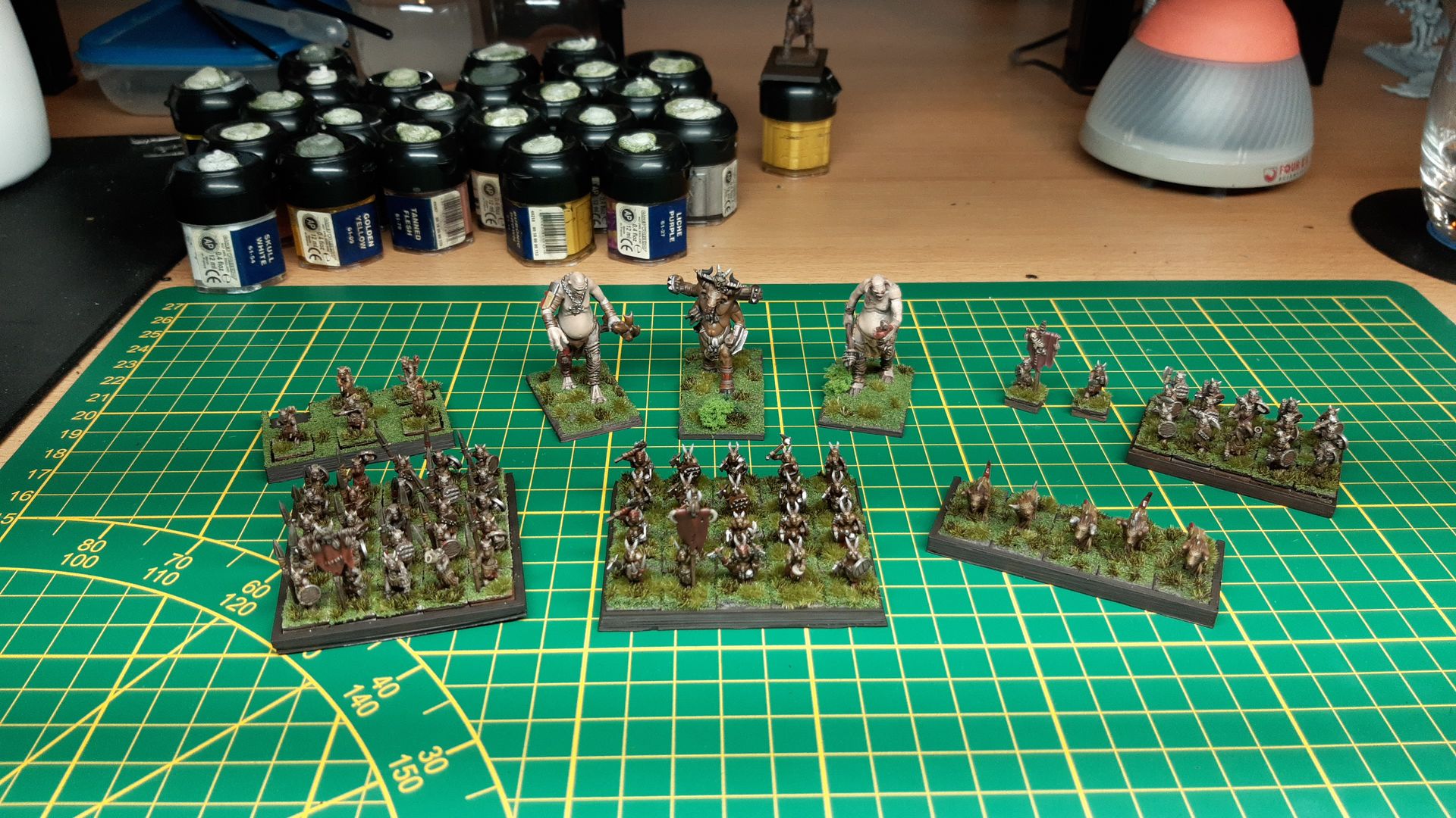 Ein weiterer Schritt zur Fertigstellung ist getan. 25 Ungors, 2 Gnargors, Grinderlak, Zygor, Todesbulle, Stufe 4, AST und ein Sturmbulle sind fertig.