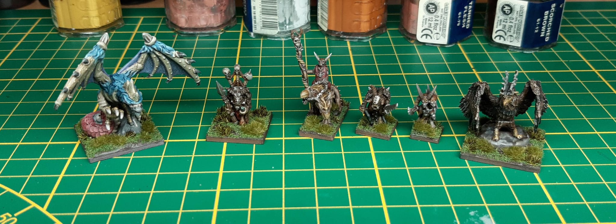 Dazu habe ich noch Harpyien und einen Preyton hier rum liegen. Die werde ich ebenfalls noch fertig machen.