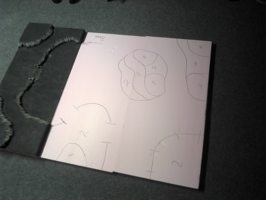 Also habe ich ein bisschen was geschnibbelt, ein bisschen was probiert, ein bisschen was gebastelt... Raus gekommen ist dann das (Ein Teil des dreiteiligen Geländes ist schon relativ weit. Ich bin ganz zufrieden):