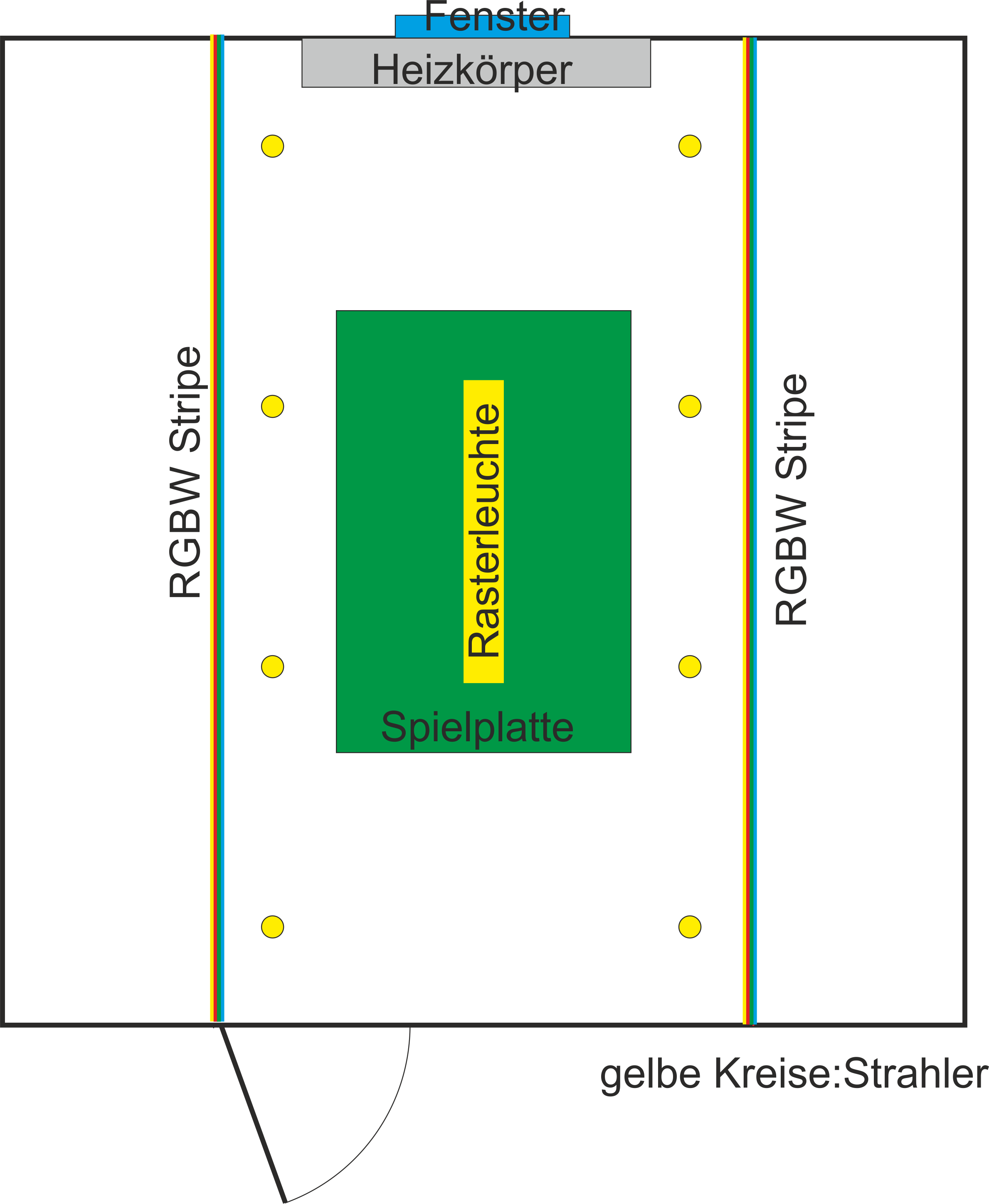 Heute habe ich dann endlich mal meine Lichtplanung zu Papier bzw.PC gebracht. Der Spieltisch soll mitten in den Raum um möglichst komfortabel drumherum gehen zu können.