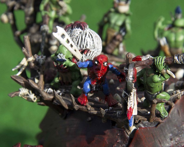 Ich habe heute mal Bilder von meiner Spinne gemacht. War so schönes Wetter draußen. Ich habe sie ein bisschen umgebaut, so dass ich entweder das Katapult oder den Altar aufsetzen kann. Das Netz sollte als Portal dienen . . . und nicht zu vergessen den kleinen Helden . . . Spidergobbo