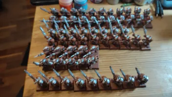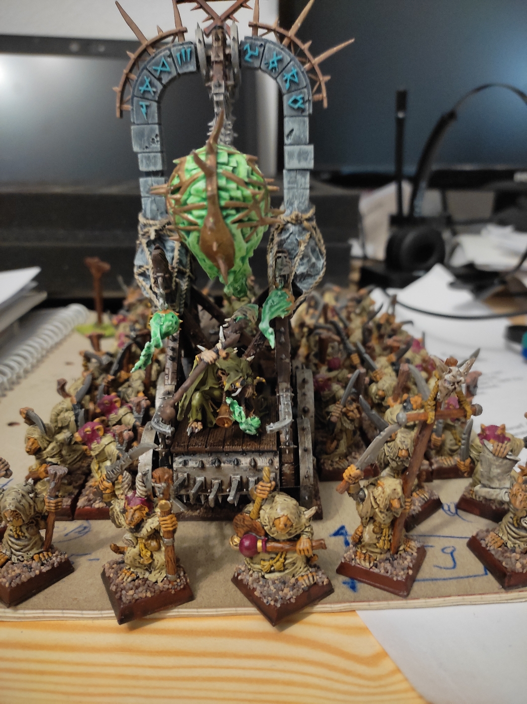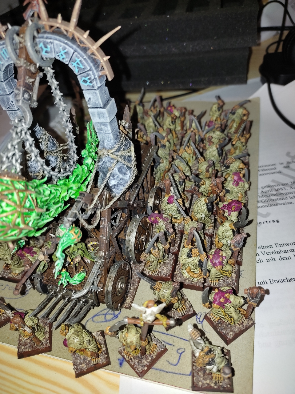Bemalungstechnisch hab ich keine Plan. Ich bemale worauf ich gerade Lust habe. Nach den 45 Sklaven (sobald die fertig sind) kommen sehr warscheinlich die Sturmratten oder das Seuchenkatapult (Eigenbau dran).