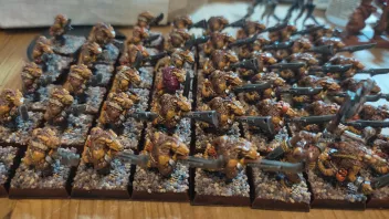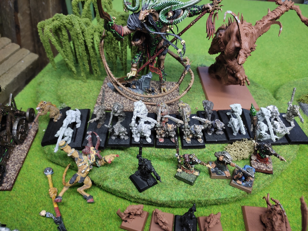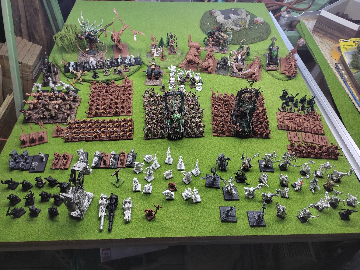 Er hat Waldelfen ich hab Dunkelelfen und Skaven (Zugriff hätten wir noch auf Imperium und Tiermenschen / Chaos)