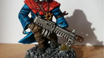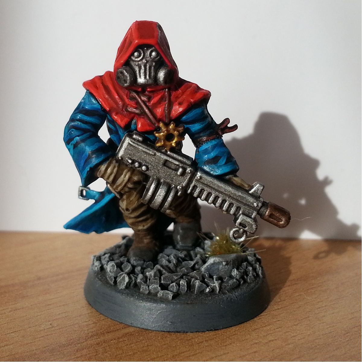Ein fertiger Chaoskultist. Dieser wurde recht aufwändig und zeitintensiv bemalt und ich denke ich werde die 39 anderen Kultisten dann doch eher mit einer etwas schnelleren Technik bemalen müssen. Sonst brauche ich alleine für die Kultisten ne halbe Ewigkeit! ![]()