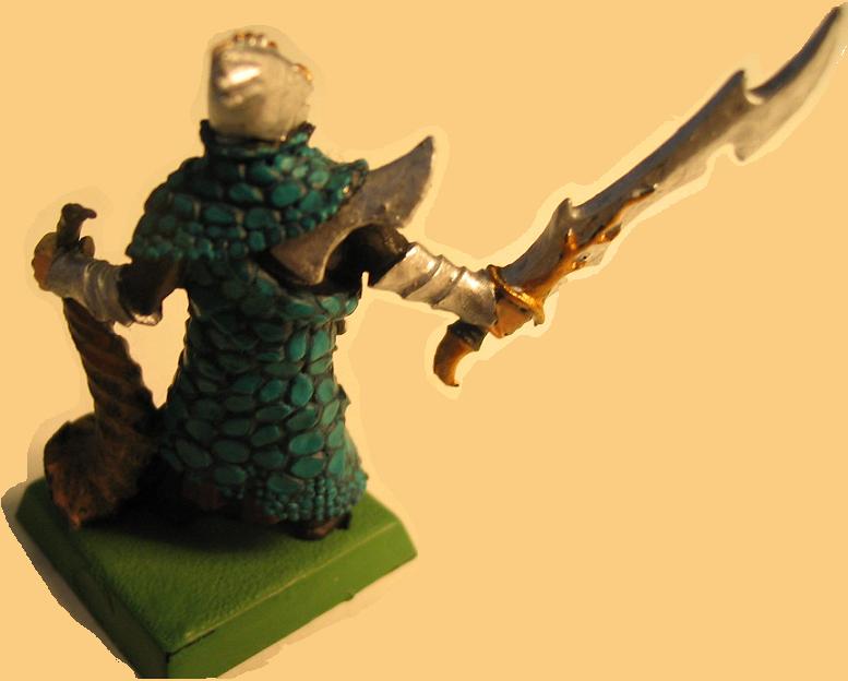 Also ich weiss net, ob wir die selben Bilder gesehen haben, aber die Echse is eindeutung mit einer Mischung aus Camo Grenn und Chaos Black grundiert und die Schuppen mit einer Mischung aus Camo Green und Skull white. Wie meinst du des mit dem Speer aus der Kriegerpackung? wie soll des gehen?