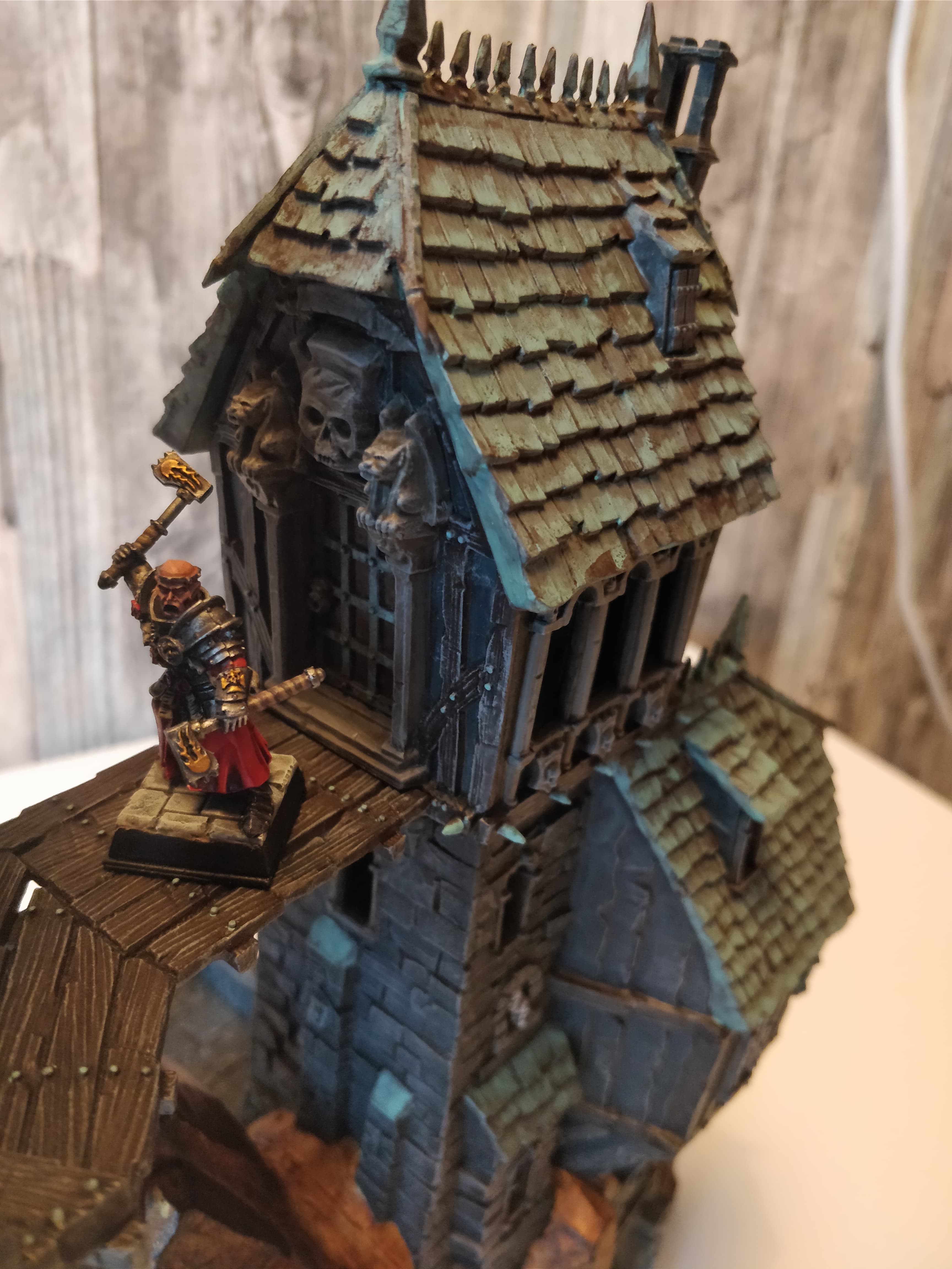 Da hier ja gar nichts passiert, dachte ich, dass ich mal ein paar Bilder von meiner Warscryer Citadel hier posten könnte. Das Farbschema ist nicht besonders einfallsreich, aber es war mein erstes Modell dieser Größe und ich hatte die Möglichkeit, dass erste mal Weathering am Dach auszuprobieren. Daher bin ich ganz zufrieden