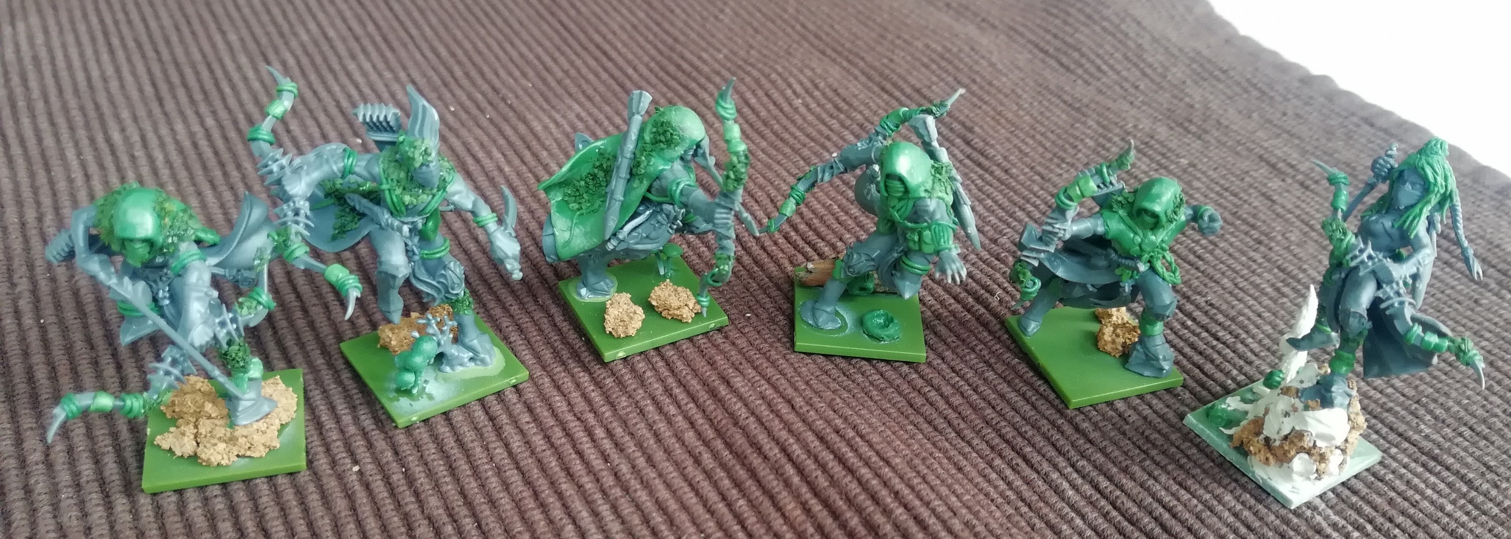 Bitte herzeigen, wenn die bemalt sind! Das ist schon echt bewundernswert, wie gut die Kapuzen und so geworden sind. War letztens stolz darauf, dass ich bei einem Hochelfenhelden ein ganz einfaches Band um seinen Schild aus Green Stuff geformt habe, damit es so aussieht, als ob er sich das Schild auf den Rücken gebunden hat. Und jetzt sehe ich das hier