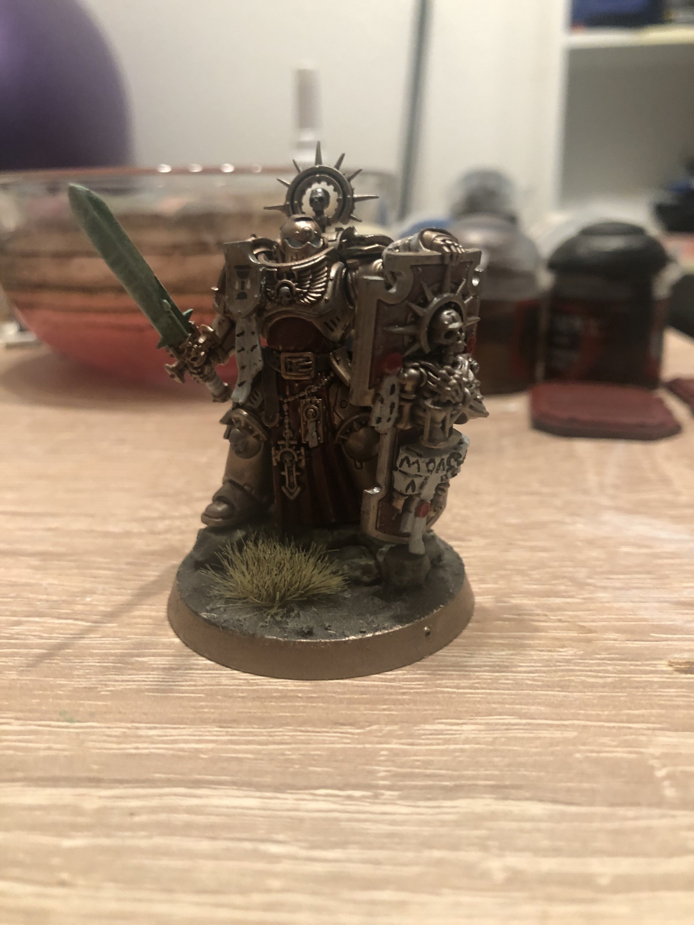 runelord brass dann mitm nuln oil geshadet und mit einem hellen metallton gebrusht glaub necron compound oder wie des heißt ?