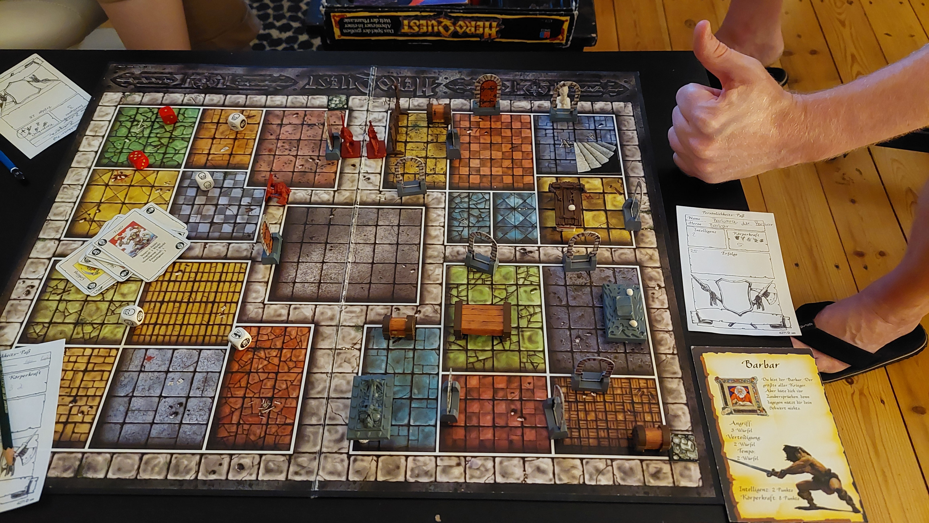 Endlich mal wieder eine Runde HeroQuest gezockt...Hier sieht man aber schon das dramatische Ende, als der zwergische Heroe durch einen Pfeil aus der Wand niedergestreckt wurde, als er zu gierig nach Schätzen suchte!