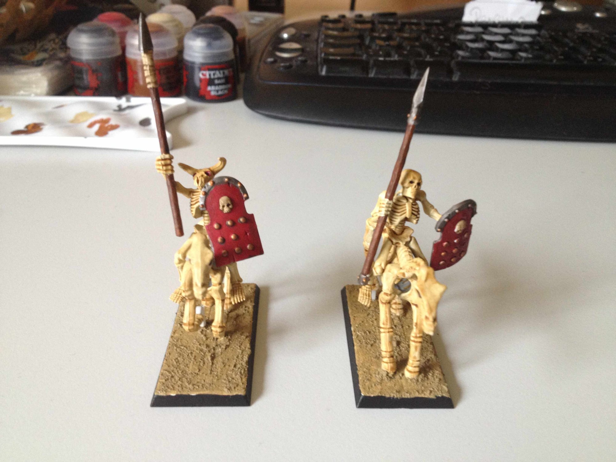 Die Ränder von den Schilden sehen unbemalt aus, Der Farbton der Knochen gefällt mir ganz gut, würde aber ggf. nochmal etwas aufhellen an den erhabeneren Stellen zB durch Drybrushen.